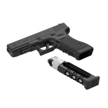 Das Original wurde vom österreichischen Waffenhersteller Gaston Glock entwickelt. Es ist das erste Modell unter den Glock Pistolen. Die Co2-Pistole ist mit einem schweren Metallschlitten ausgestattet. Der Rest besteht aus hochwertigem Kunststoff. Alle Original Markings sind vorhanden. Weitere Merkmale sind eine feste Visierung, ein gezogener Lauf, eine manuelle Sicherung, ein Single / Double- Action Abzug und eine Railschiene unter dem Lauf. Das Blowback System sorgt für ein realistisches Schießerlebnis. Der Antrieb erfolgt über eine Standard 12 g Co2-Kapsel. Das Modell kann sowohl 4,5 mm Diabolos als auch Stahl BBs verschießen. Die Magazinkapazität beträgt 8 Schuss. Im Lieferumfang befindet sich ein Original Glock Koffer.