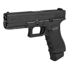 Diese Replika wird durch Umarex, die sich die Lizenzrechte für Airsoft und Luftdruck der Marke Glock gesichert haben, vertrieben. Die Airsoft Ausführung verfügt über alle Original Markings. Die Griffrücken bei diesem Modell sind austauschbar. Es sind insgesamt 3 verschiedene Griffrücken im Lieferumfang enthalten (Small, Medium und Large). Unter dem Schlitten befindet sich eine Picatinnyschiene zur Montage von Zubehör. Die Visierung erfolgt über Kimme und Korn. Zudem ist das Modell mit einem Blowback System (beweglicher Schlitten) ausgestattet, wodurch ein realistisches Schussgefühl entsteht. Der Metallschlitten bleibt hinten stehen, sobald das Magazin leer geschossen ist. Nach Neueinlegen eines geladenen Magazins muss man den Schlittenfang drücken, um weiter zu schießen. Genau wie bei einer Original Glock Waffe sind alle Hebel, die schussrelevant sind, bedienbar. Weitere Merkmale sind ein Single Action Abzug und eine Abzugszüngelsicherung. Die Airsoft-Waffe verfügt über ein einstellbares Shoot-Up (Hop-Up-System), um die Flugbahn der Kugel zu justieren und eine optimale Flugbahn zu erreichen. Der Antrieb erfolgt über eine Standard 12-g Co2-Kapsel. Das Magazin hat eine Kapazität von 25 Schuss BB Kugeln. Empfohlen werden Kugeln mit einem Gewicht von 0,20 g - 0,23 g.