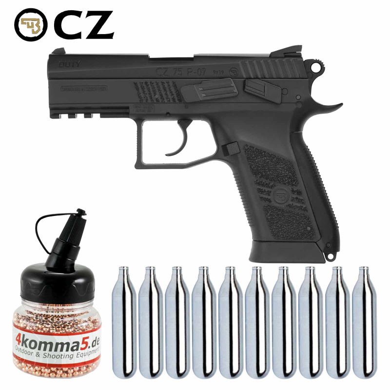 CZ 75 P-07 Duty 4,5 mm Stahl BB Co2-Pistole Blow Back (P18) + 10 Co2-Kapseln + 1500 Stahl-BB's 4komma5