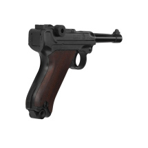 Die P08 kommt als Nachbau der im 2. Weltkrieg weitverbreiteten P08, hier als Schreckschuss Pistole im Kaliber 9 mm P.A.K.. Das Modell besteht aus Metall und ist brüniert. Die Griffschalen sind strukturiert und bestehen aus Holz. Die Pistole ist wie das Original mit einer Selbstladetechnik mit Kniegelenkverschluss ausgestattet. Weitere Merkmale sind eine Magazinsperre und ein Stahlstoßboden. Das Modell verfügt über einen Single Action Abzug.Die SRS-Pistole kommt im Kaliber 9 mm P.A.K. (Pistole Automatik Knall) und ist mit einem 4 Schuss Magazin ausgestattet.
