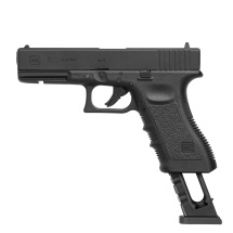 Das Original wurde vom österreichischen Waffenhersteller Gaston Glock entwickelt. Es ist das erste Modell unter den Glock Pistolen. Die Co2-Pistole ist mit einem schweren Metallschlitten ausgestattet. Der Rest besteht aus hochwertigem Kunststoff. Alle Original Markings sind vorhanden. Weitere Merkmale sind eine feste Visierung, ein gezogener Lauf, eine manuelle Sicherung, ein Single / Double-Action Abzug und eine Railschiene unter dem Lauf. Das Blowback System sorgt für ein realistisches Schießerlebnis. Der Antrieb erfolgt über eine Standard 12 g Co2-Kapsel. Das Modell kann sowohl 4,5 mm Diabolos als auch Stahl BBs verschießen. Die Magazinkapazität beträgt 8 Schuss. Im Lieferumfang befindet sich ein Original Glock Koffer.