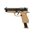Die Zoraki 918 ist eine sehr zuverlässige, sauber verarbeitete und stabile SRS-Pistole. Sie kommt in der Farbgebung Desert. Alle funktionsrelevanten Teile sind stahlverstärkt. Der Schlitten besteht aus Metall. Die ergonomisch geformten, angerauten Griffschalen bestehen aus hochwertigem Kunststoff. Der Griffrücken ist zusätzlich strukturiert. Vorn ist das Griffstück mit Fingermulden ausgestattet für eine sichere Handhabung. Unter dem Lauf befindet sich eine Picatinnyschiene zur Montage von taktischem Zubehör. Weitere Merkmale sind ein Single- / Double Action Abzug, sowie eine manuelle Sicherung.Die SRS-Pistole kommt im Kaliber 9 mm P.A.K. (Pistole Automatik Knall) und ist mit einem 18 Schuss Magazin ausgestattet.